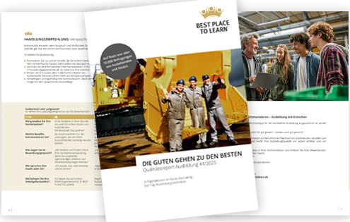 BEST PLACE TO LEARN® ist das branchenübergreifend anerkannte Gütesiegel für Ausbildungsbetriebe. Es steht für Seriosität, Transparenz und Glaubwürdigkeit und genießt am Markt einen ausgezeichneten Ruf. Die Zertifizierung betont den Stellenwert, den Sie der Entwicklung Ihrer Nachwuchskräfte beimessen. Gleichzeitig ist sie ein Zeichen der Wertschätzung für die Arbeit des Ausbildungspersonals. Bei Bewerbern sorgt das Gütesiegel für Aufmerksamkeit und schafft Vertrauen in die Qualität der Ausbildung.